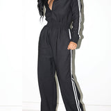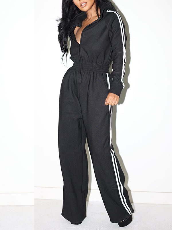 Side-Stripe Zip-Front Hoodie Jumpsuit