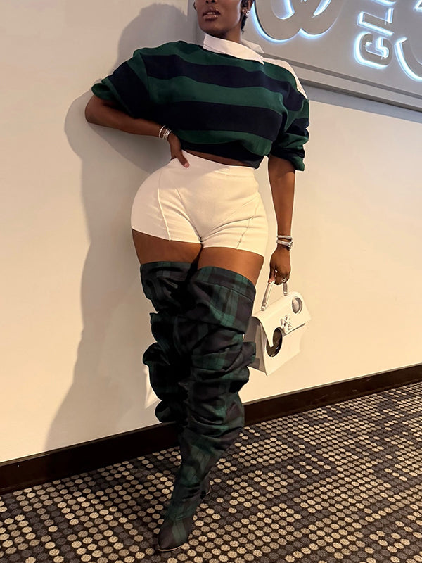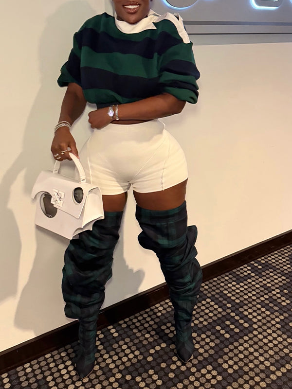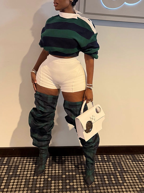 Stripe Button-Shoulder Top