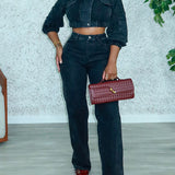 Denim Cropped Jacket & Pants Set