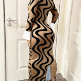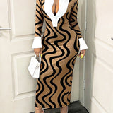 Printed-Combo Button-Front Dress
