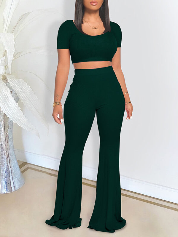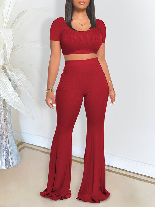 Ribbed Crop Top & Pants Set