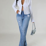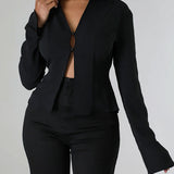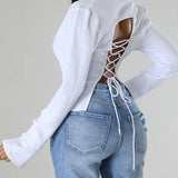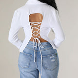 • Spread Collar, Long Sleeves, Button Front, Lace Up