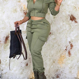 • Hooded Neckline, Long Sleeves, Zip Front, Cargo pants