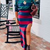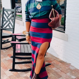 Stripe Polo Top & Slit Skirt Set