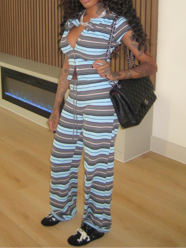 Stripe Shirt & Wide-Leg Pants Set