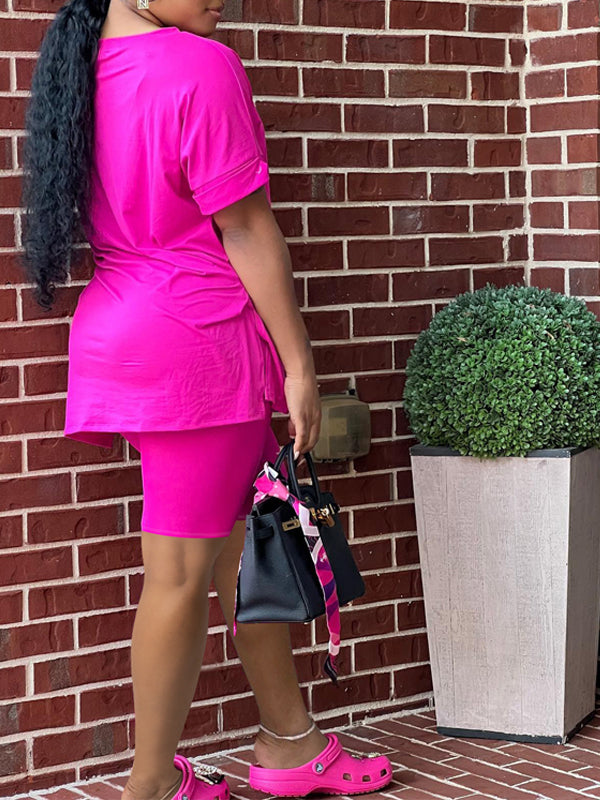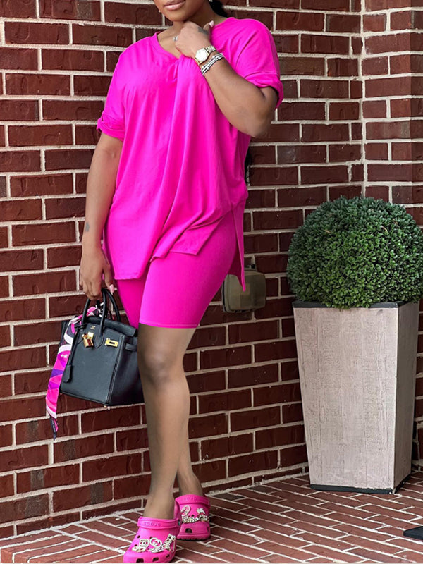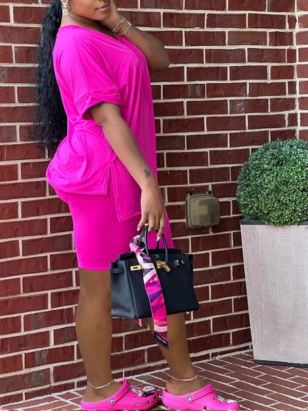 - V Neck, Short Sleeeve, Side Slit, Elastic Waist