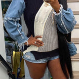 - Crew Neckline, Denim Long Sleeves, Slit Front