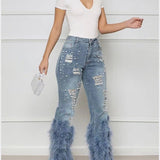 Morchique Feather Combo Ripped Jeans
