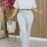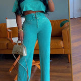 Printed Crop Top & Lace-Up Pants Set