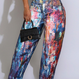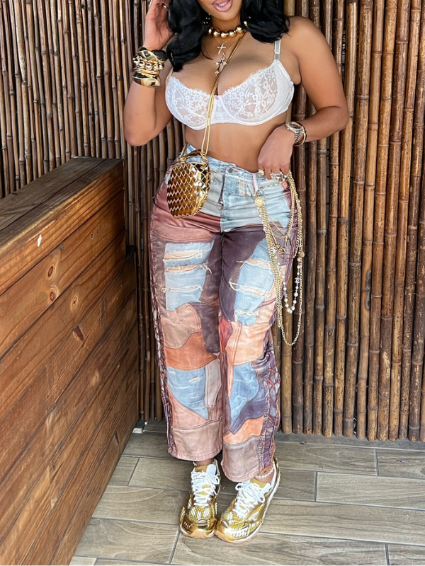 Morchique Abstract Colorblock Loose Casual Jeans