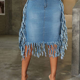 Morchique Fringe Combo Denim Skirt