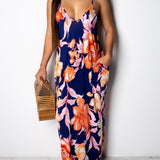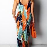 - Leaf Print, Spaghetti Straps, With Pockets