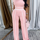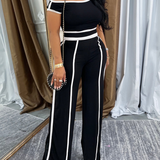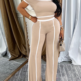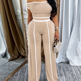 Morchique Piping Off-Shoulder Short Top & Pants Set