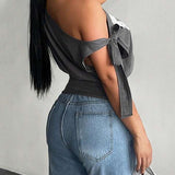 • Boat Neck, Sleeveless, Tied on Shoulder