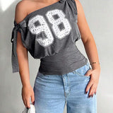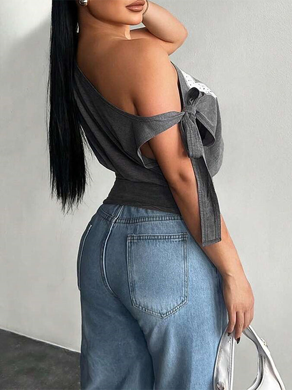 Printed Boat-Neck Tied Tee