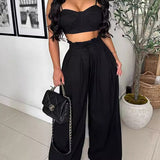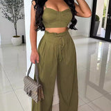 Solid Cami Top & Wide-Leg Pants Set