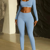 Solid Crop Top & Pants Set