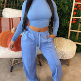 Solid Top & Drawstring Pants Set