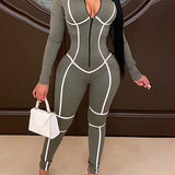 Stripe Zip-Front Jumpsuit